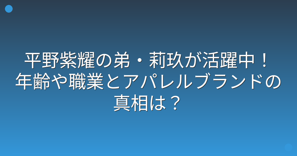 今回は、平野紫耀さんの弟である平野莉玖さんの年齢や職業、そしてアパレルブランドの活動について詳しくお伝えしてきました。