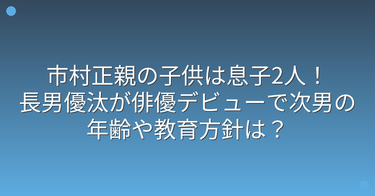 市村正親さんの教育方針は、長男と次男で異なるアプローチを取っているようです。