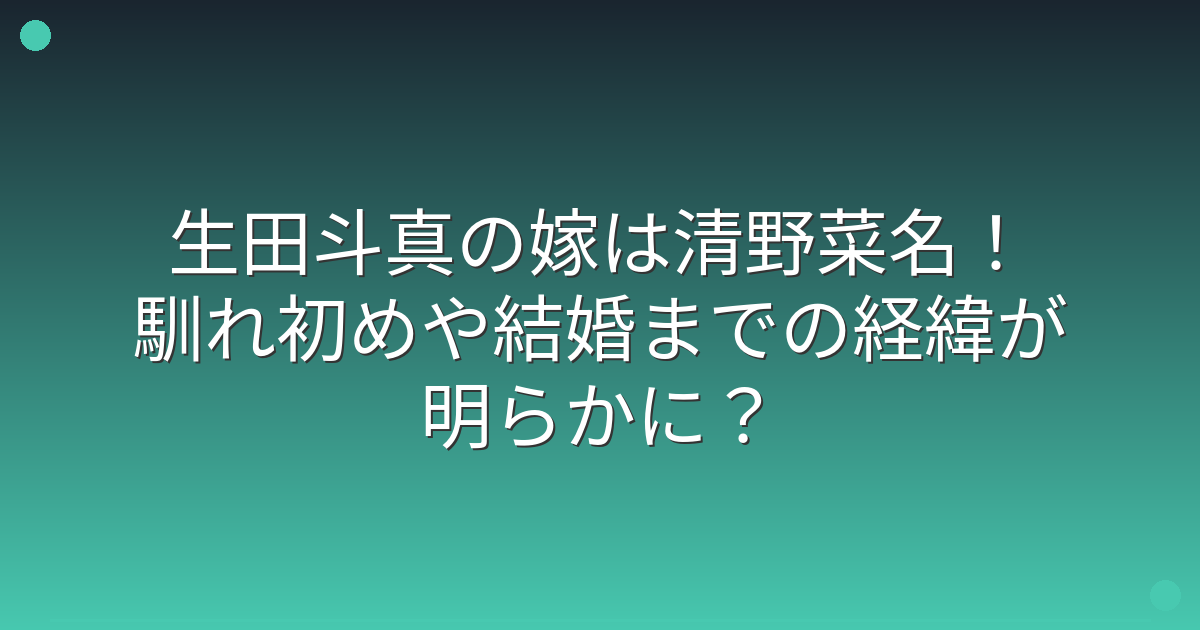 生田斗真さんの嫁は女優の清野菜名さんで、2015年の映画「予告犯」での共演がきっかけで交際に発展し、2020年に結婚されました。