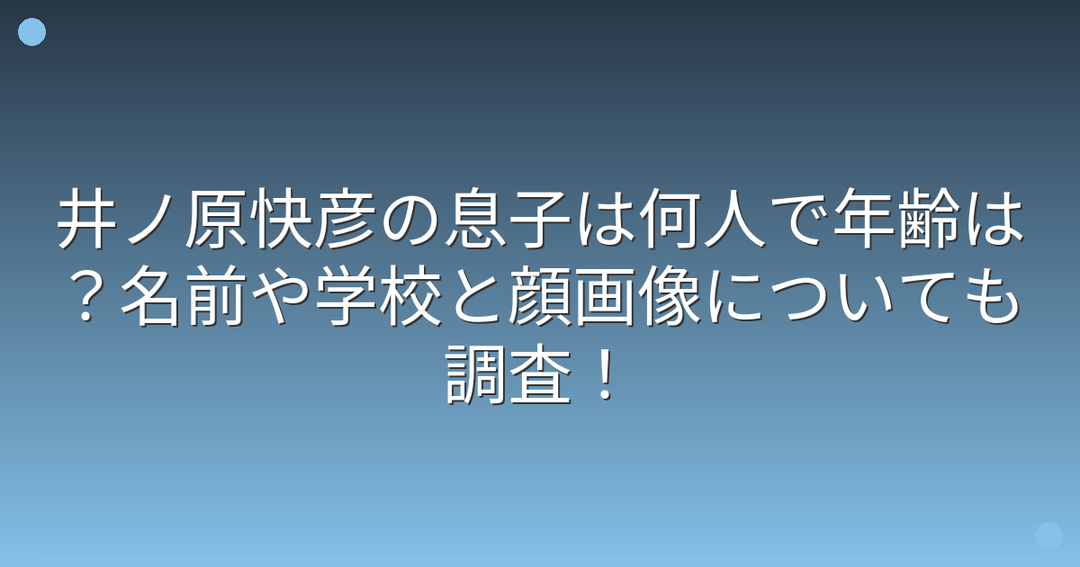 そこで今回は、井ノ原快彦さんの息子の人数や年齢、名前や学校などについて詳しく見ていきましょう!
