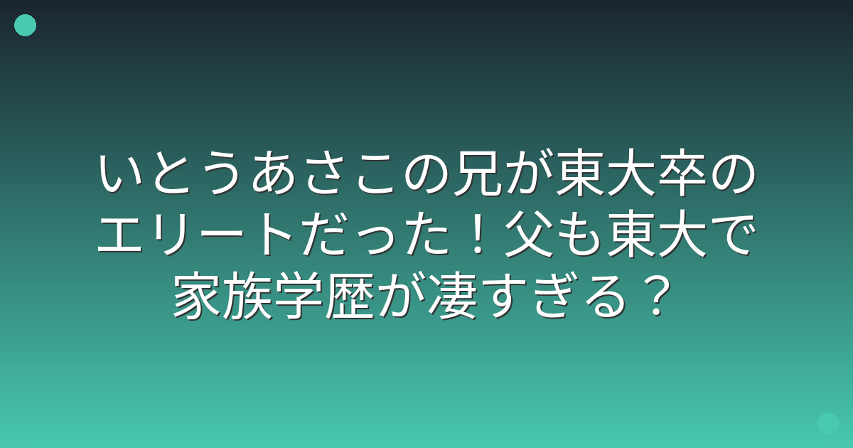 いとうあさこさんの兄は東京大学出身のエリートで、父親も同じく東京大学法学部卒業という、非常に学歴の高い家族であることが分かりました。