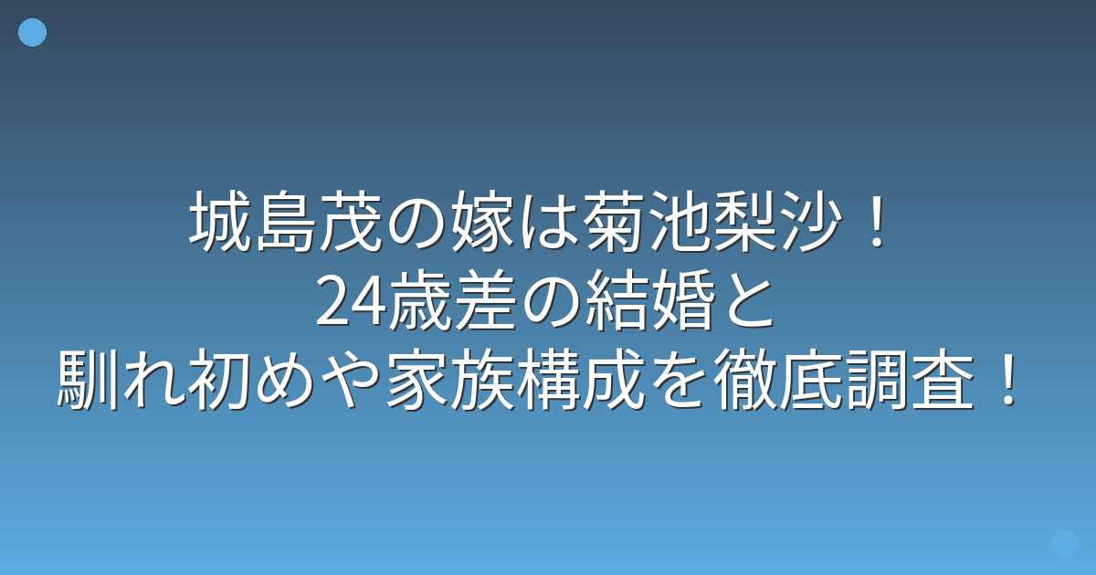 城島茂さん(54)は2024年9月28日に菊池梨沙さん(30)との結婚を発表し、24歳差の年の差婚として話題となりました。