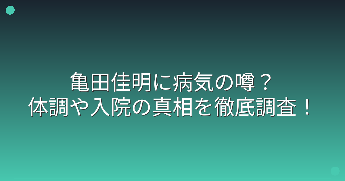 では、なぜ「亀田佳明 病気」というキーワードが検索されるようになったのでしょうか。
