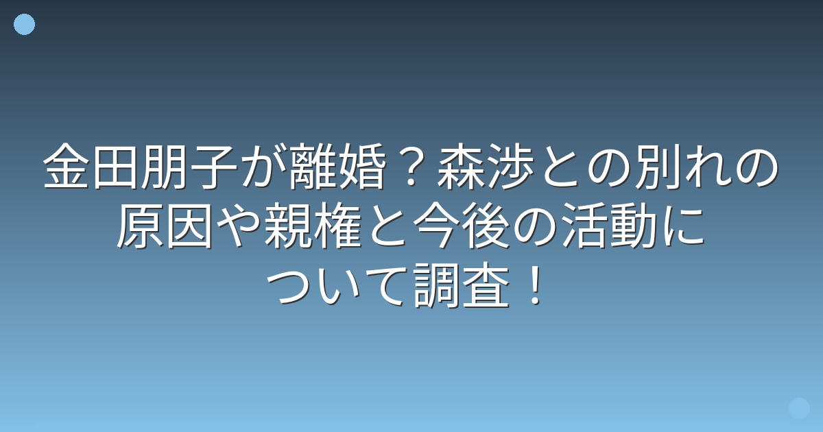 金田朋子さんと森渉さんも、お子さんのことを最優先に考え、離婚後も協力関係を維持しているようです。