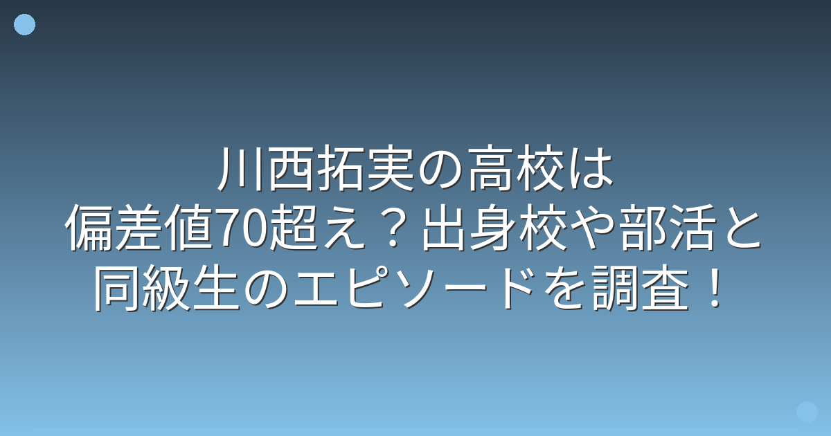 川西拓実の高校の偏差値と部活動
