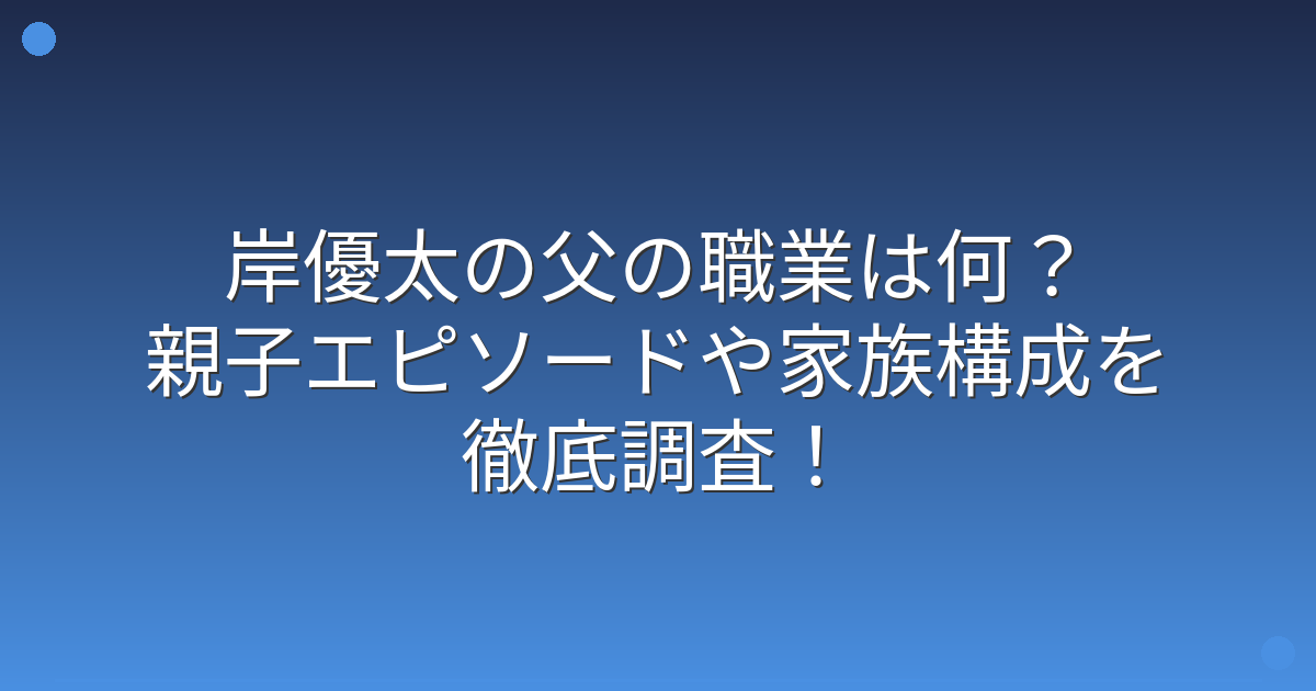 岸優太さんの父親の職業について、一般の方であるため詳細な情報は公開されていません。