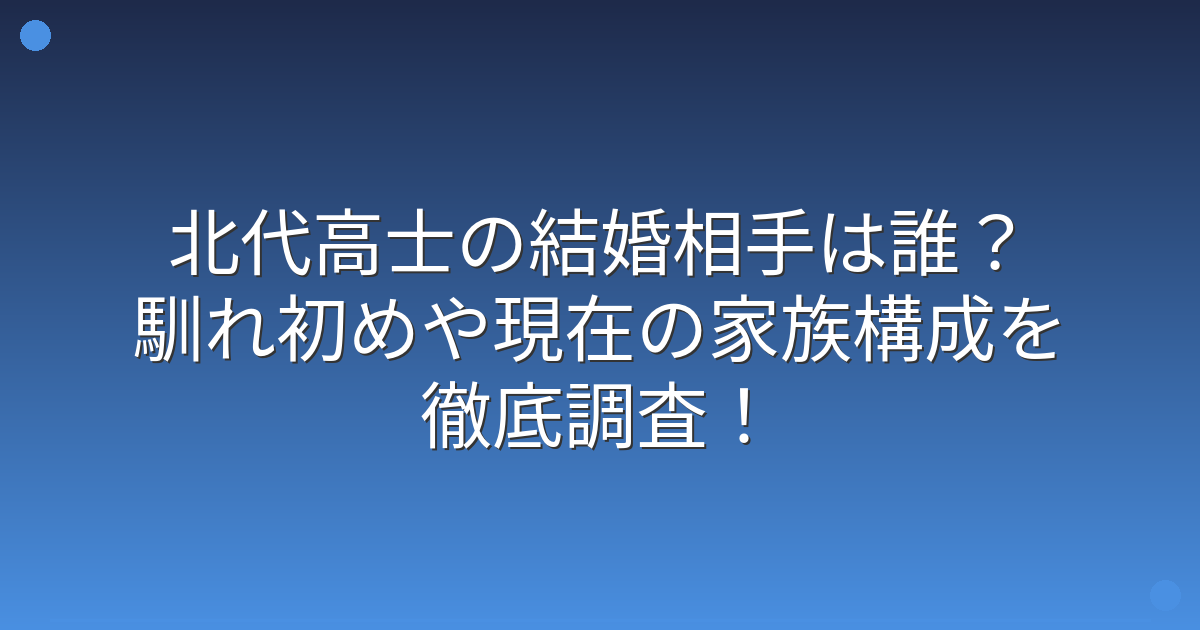 そこで今回は、北代高士さんの結婚相手や馴れ初め、現在の家族構成について詳しく見ていきましょう!
