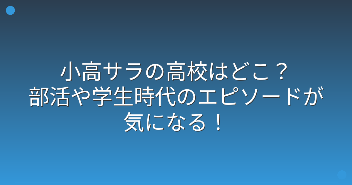今回は、小高サラさんの高校生活について、出身校や部活動、同級生のエピソードなどを調査してみました。