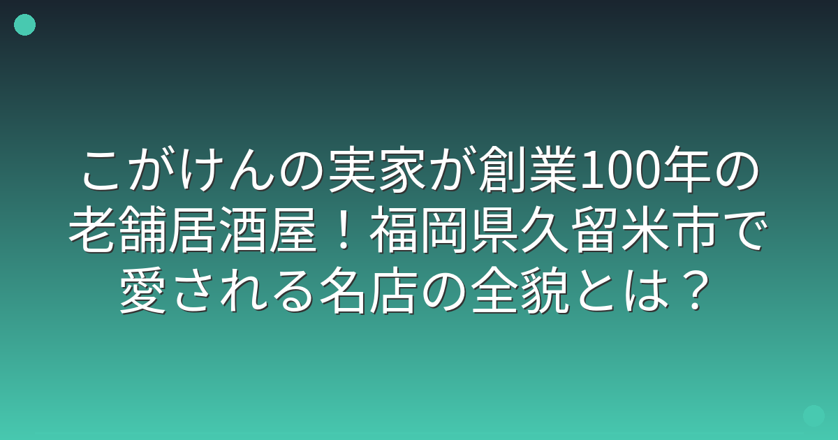 地元のファンの間では、こがけんさんの活躍と実家の老舗居酒屋の存在が、誇らしい話題として語られることも多いようです。