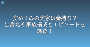ただし、これらはあくまで推測の域を出ず、実家が特別裕福であるという確証はありません。