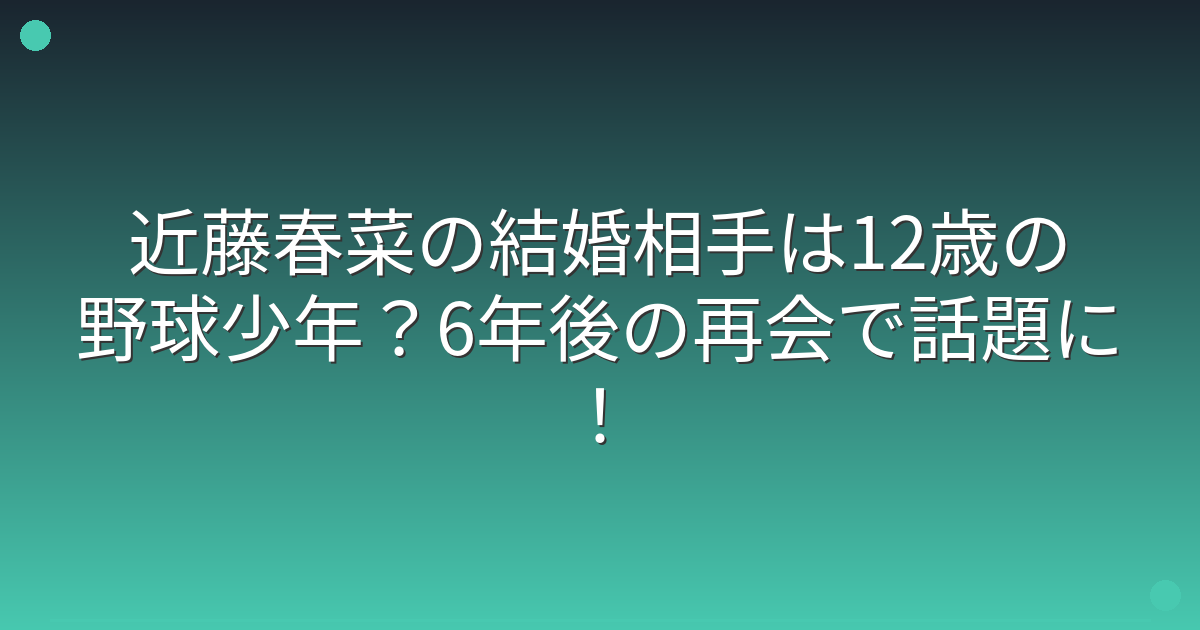 今回は、近藤春菜さんの結婚に関する話題、特に6年前にプロポーズした少年との再会についてお伝えしてきました。