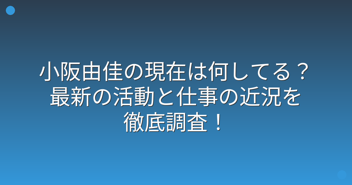 小阪由佳さんの現在の仕事について、いくつかの情報が明らかになっています。
