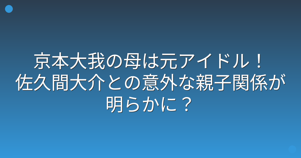 そこで今回は、京本大我さんの母親について、その経歴や家族関係、さらには意外な芸能界とのつながりまで、詳しく見ていきましょう!