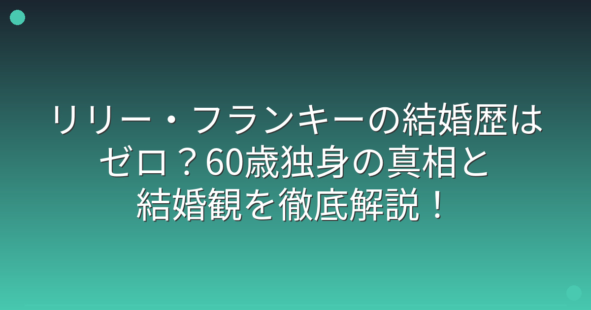 60歳を迎えた今でも独身を貫いているリリーさんですが、その真相や結婚観に注目が集まっています。
