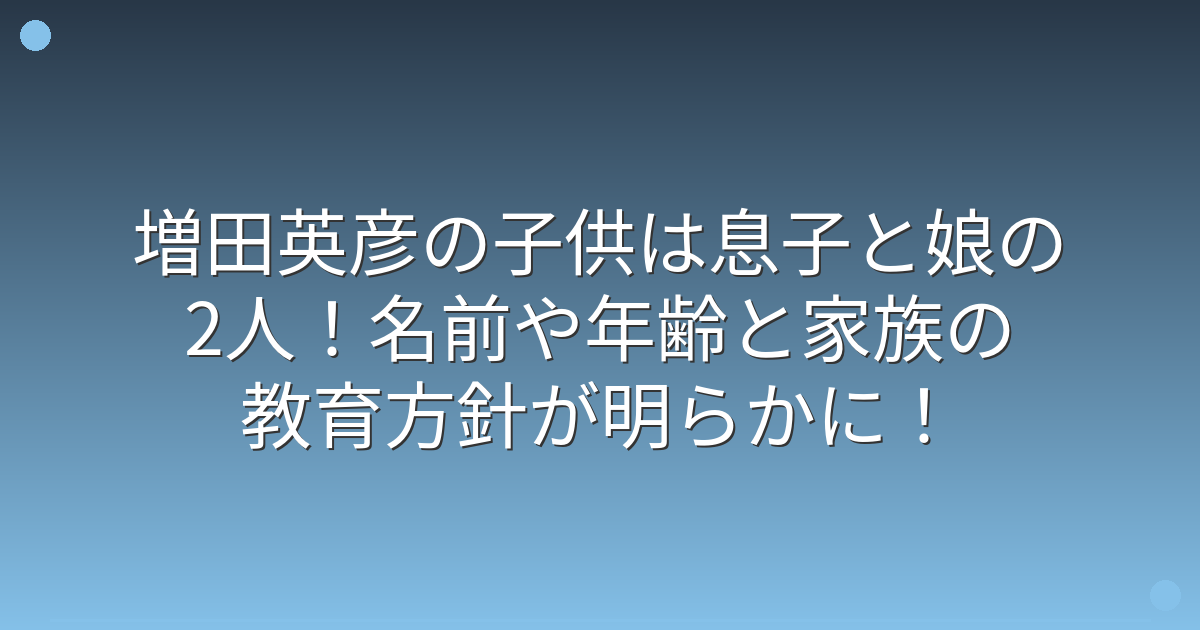 そこで今回は、増田英彦さんの子供の人数や名前、年齢、そして家族の教育方針について詳しく見ていきましょう!