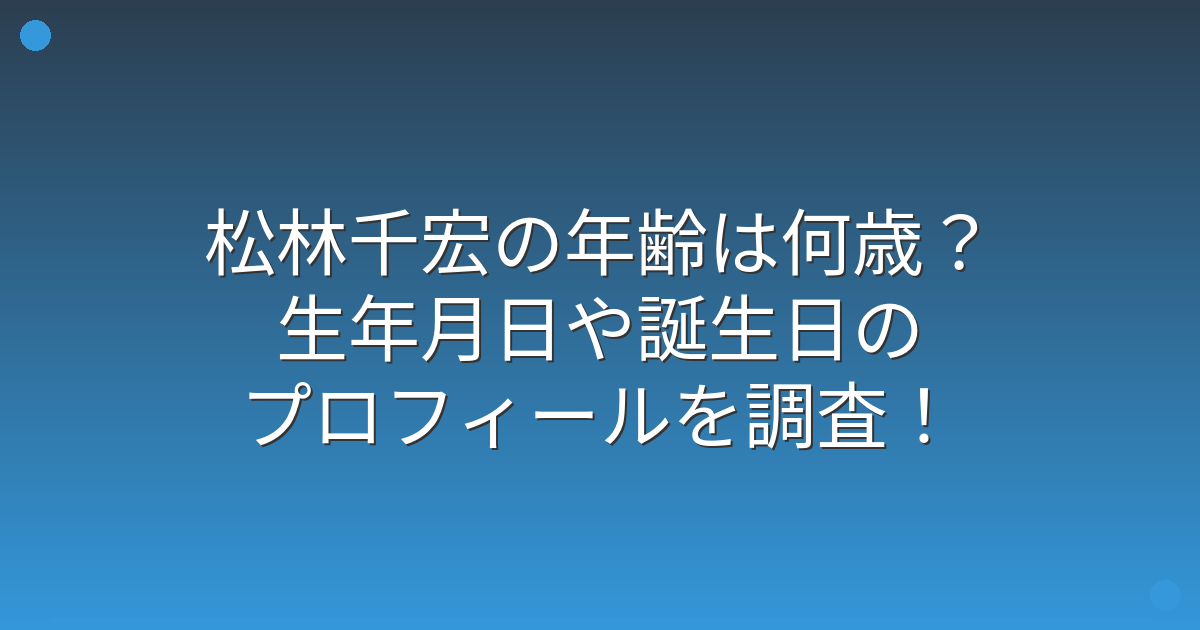 松林千宏の年齢は何歳?生年月日や誕生日のプロフィールを調査!