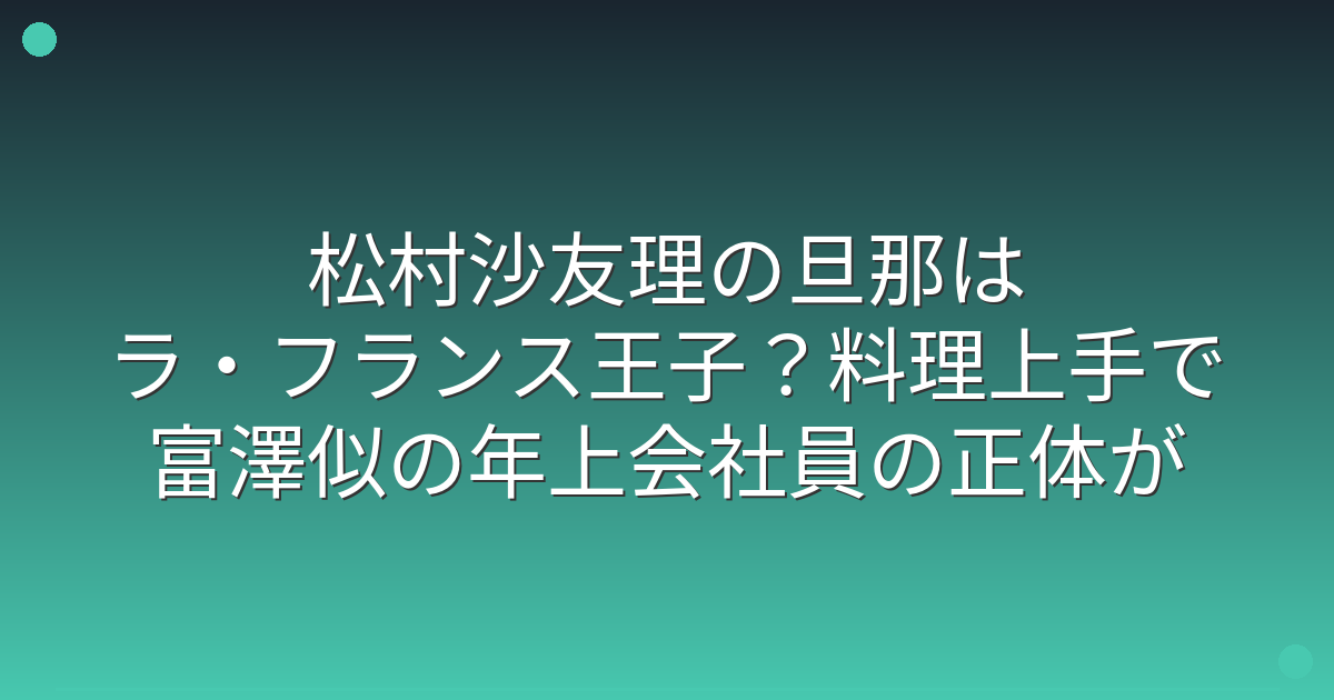 特に注目を集めているのが、松村さんが「ラ・フランス王子」と呼ぶ旦那さんの存在です。