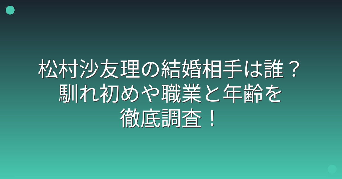 そこで今回は、松村沙友理さんの結婚相手について詳しく見ていきましょう!