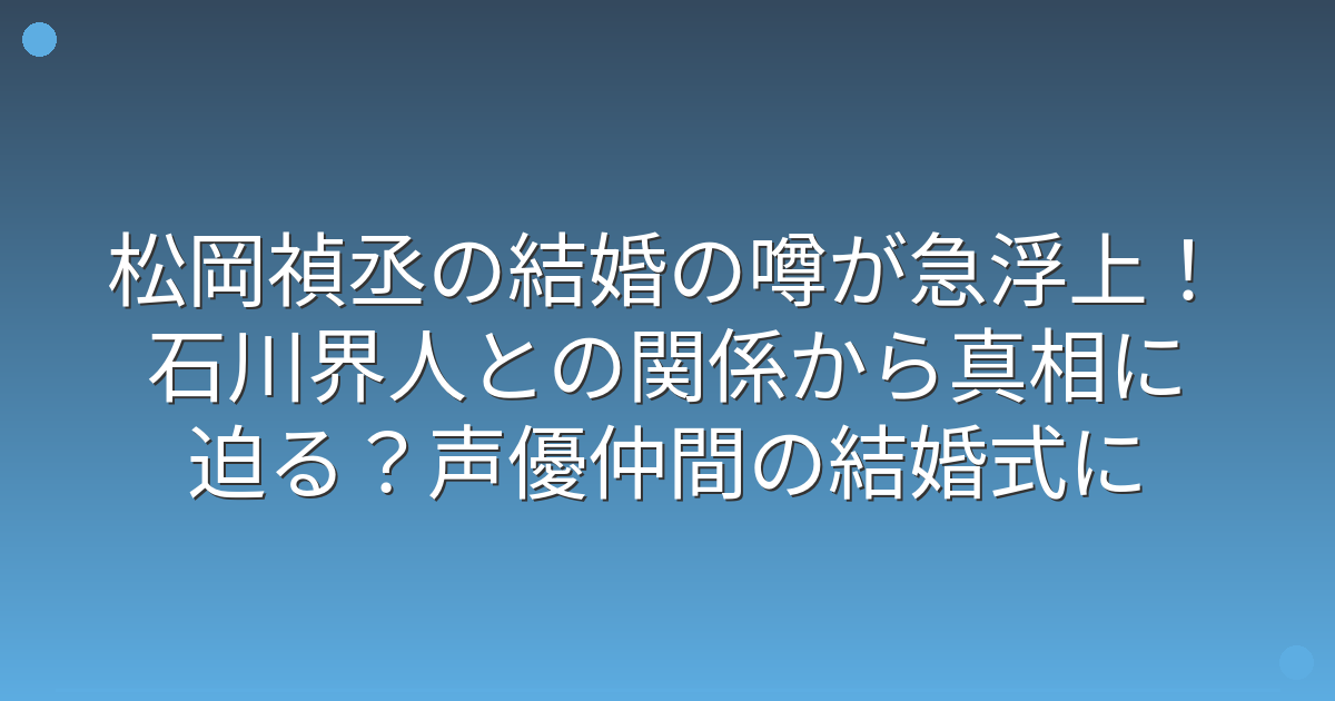 人気声優の松岡禎丞さんの結婚について、ファンの間で大きな注目を集めています。