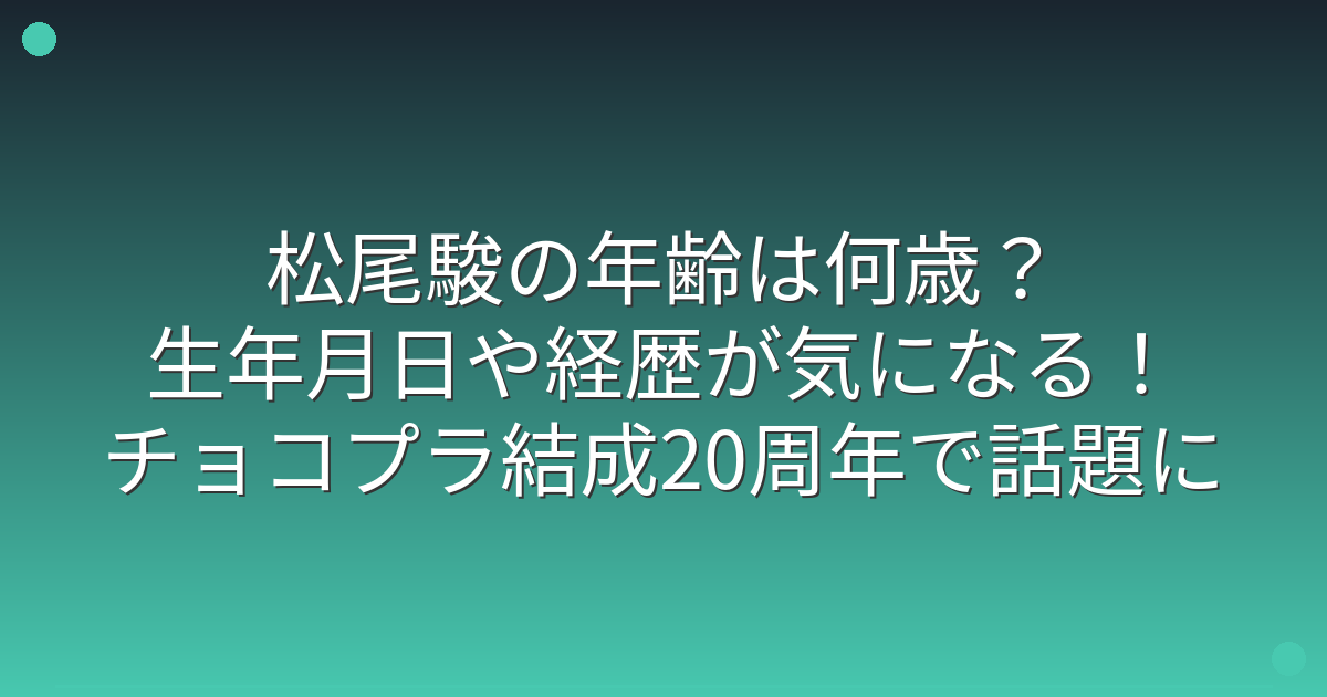 お笑いコンビ「チョコレートプラネット」の松尾駿さんが、結成20周年を迎え、大きな注目を集めています。