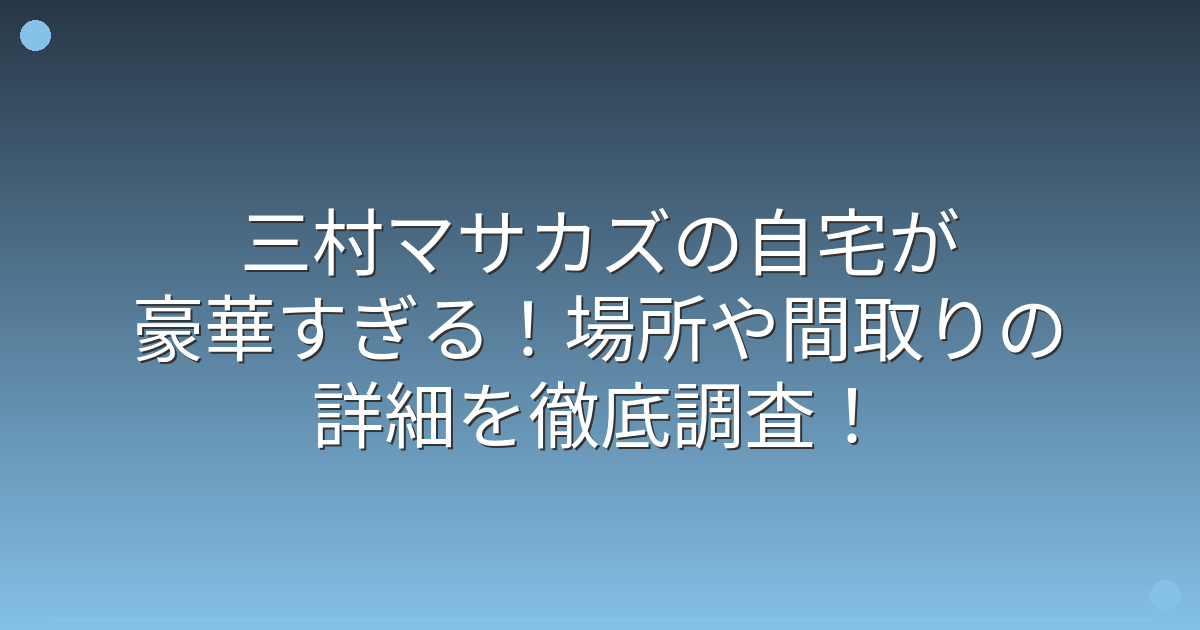 そこで今回は、三村マサカズさんの自宅の場所や間取り、そして気になる詳細について詳しく見ていきましょう!