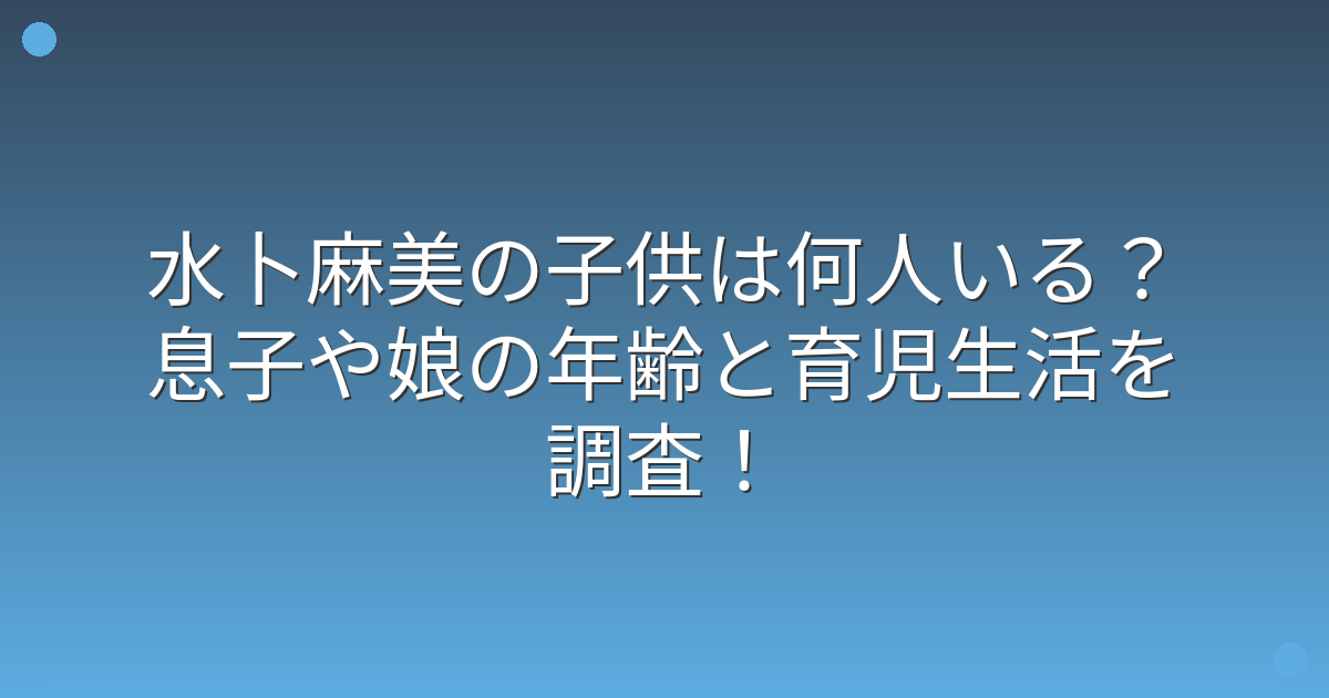 現時点では水卜麻美さんに子供はおらず、息子さんや娘さんがいるという情報は確認できませんでした。