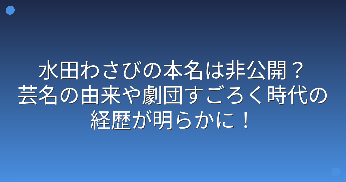 そこで今回は、水田わさびさんの本名や芸名「わさび」の由来、劇団時代の経歴について詳しく見ていきましょう!