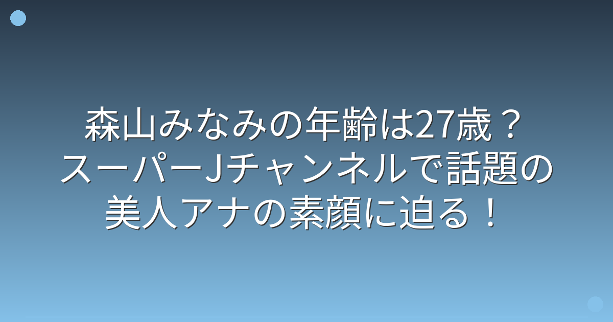 テレビ朝日の森山みなみさんが、『スーパーJチャンネル』のメインキャスターとして注目を集めています。