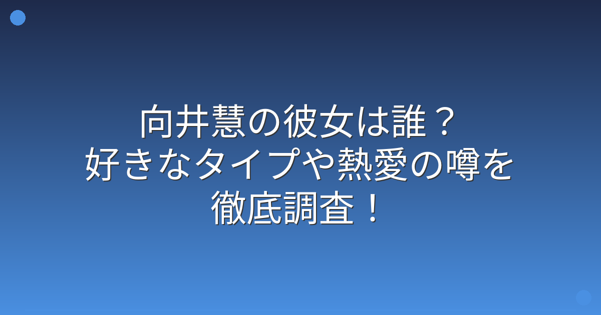 複数の報道や情報を調べた結果、2024年現在、向井慧さんに彼女がいるという確定的な情報はありません。