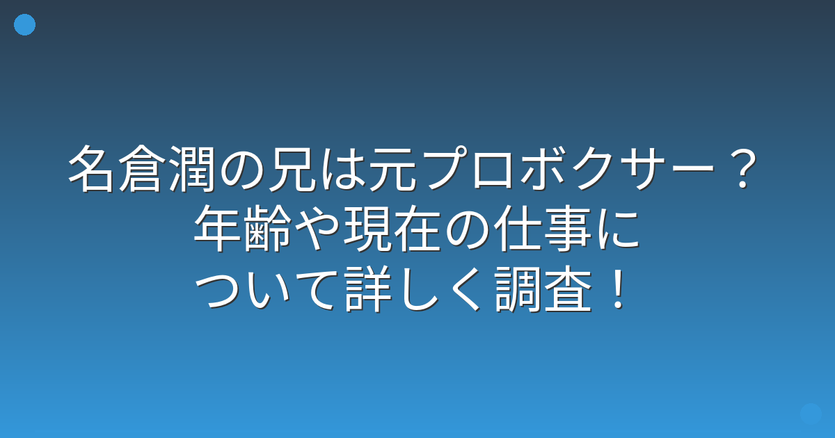 名倉潤さんには元プロボクサーのお兄さんが1人いて、現在はボクシング関連の仕事に携わっている可能性が高いということでした。