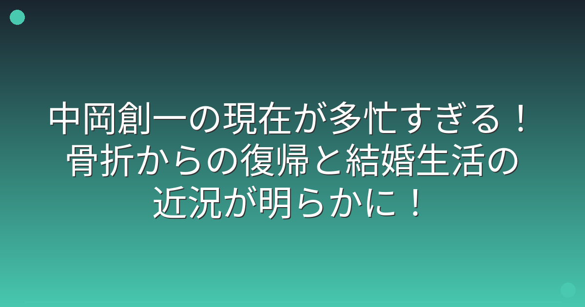 今回は、中岡創一さんの現在の活動状況や骨折からの回復、そして結婚生活についてお伝えしてきました。