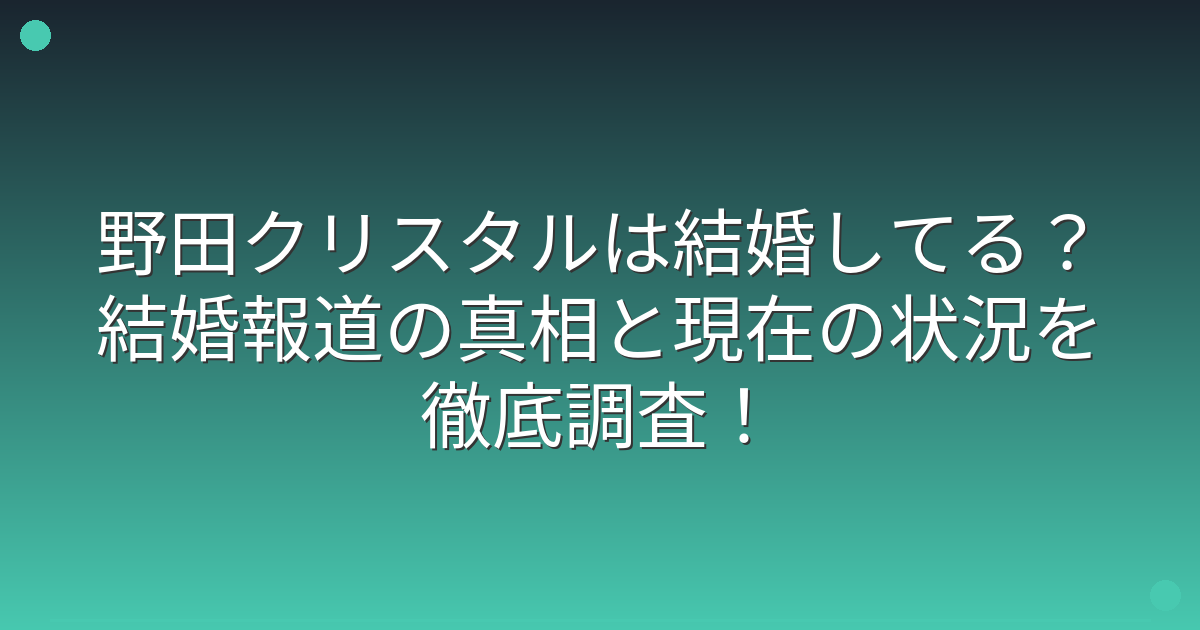 そこで今回は、野田クリスタルさんの結婚の真相や過去の報道、現在の状況について詳しく見ていきましょう!