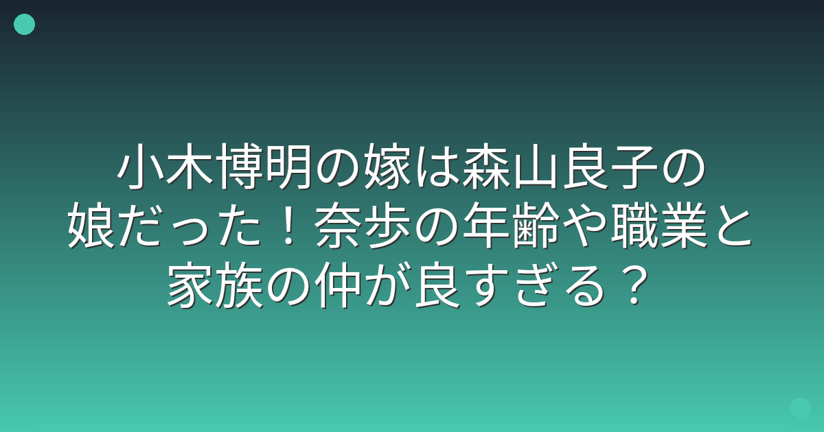 小木博明さんの嫁は、森山良子さんの長女である小木奈歩さんです。