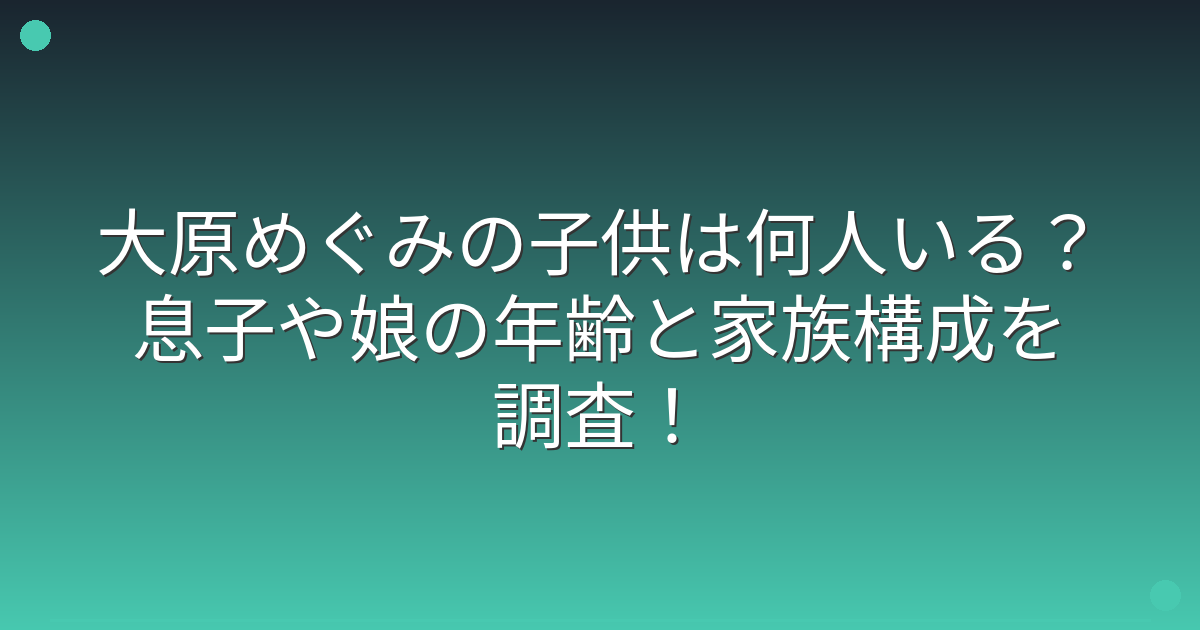 そんな大原めぐみさんについて、「子供はいるのか」「息子や娘はいるのか」といった私生活に関する疑問を持つファンが多いようです。