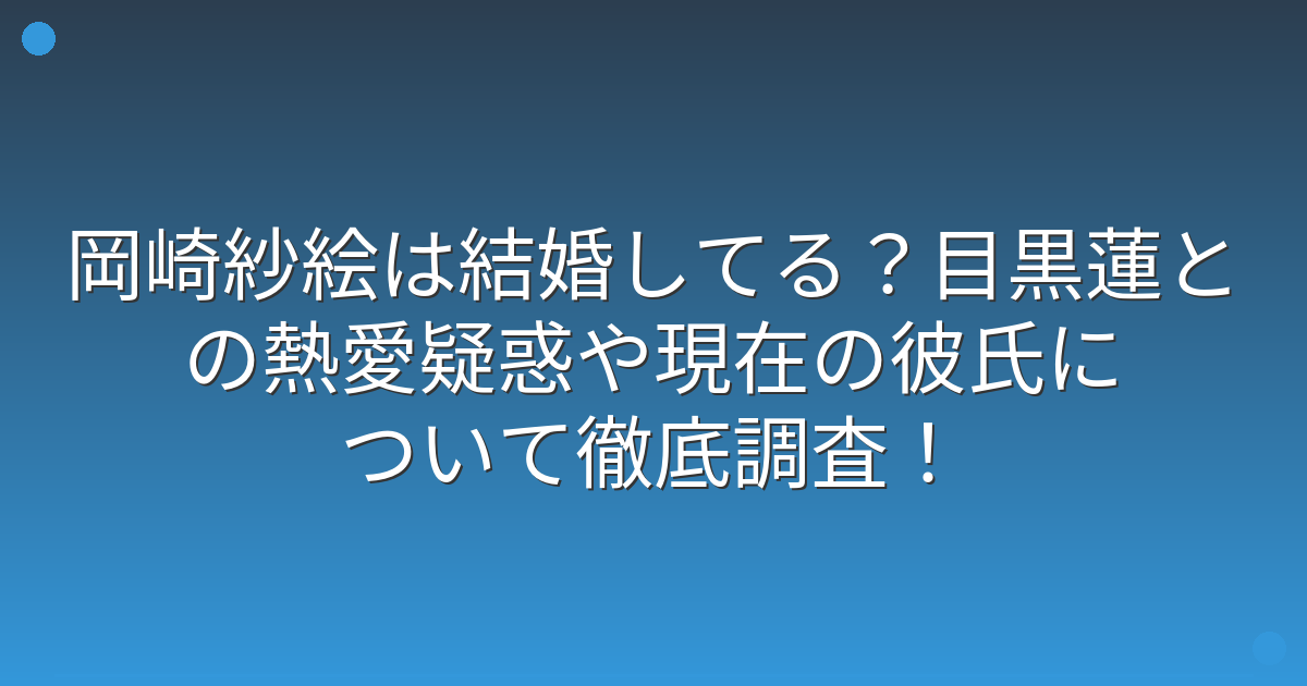2025年12月現在、岡崎紗絵さんは結婚しておらず、公式な交際報道もありません。