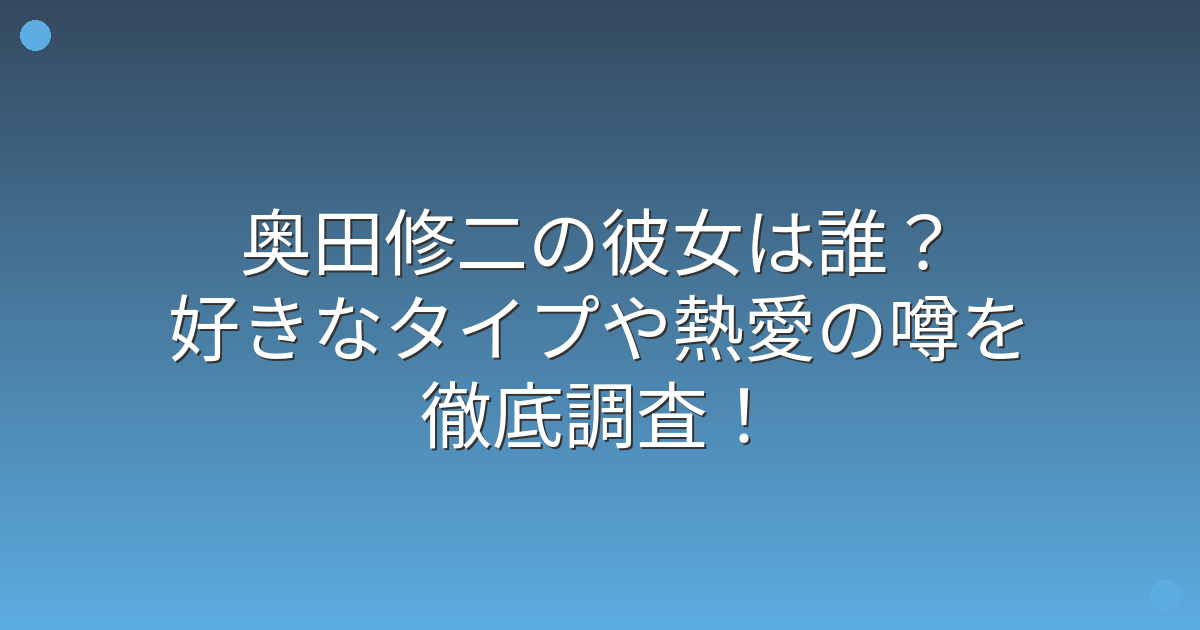 そこで今回は、奥田修二さんの彼女や熱愛の噂、好きなタイプについて詳しく見ていきましょう!