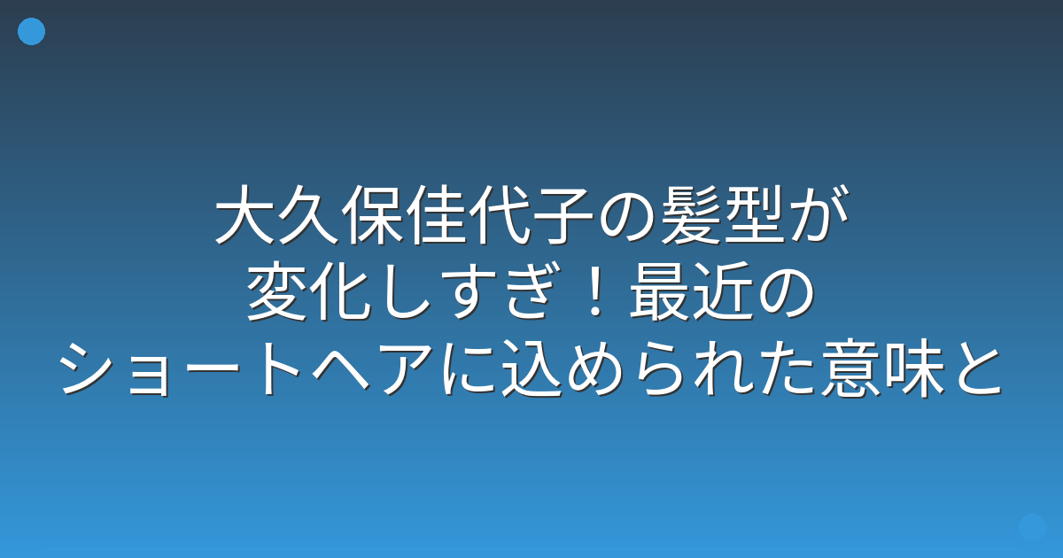 複数の報道によると、この髪型の変更には「イメージ刷新」という大久保さんの強い意志が込められているとのことです。