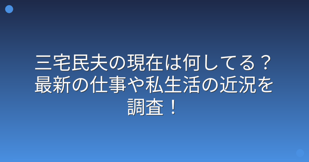 三宅民夫の現在は何してる?最新の仕事や私生活の近況を調査!
