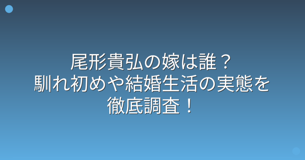 尾形貴弘の嫁は誰?馴れ初めや結婚生活の実態を徹底調査!