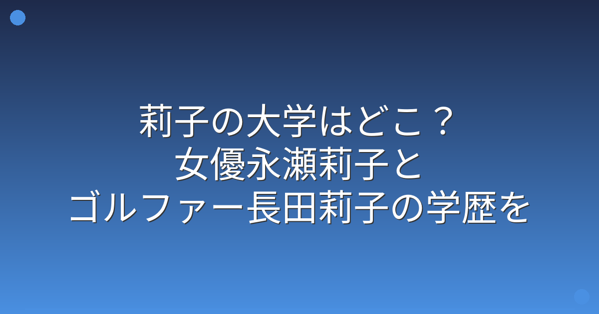 特に女優として活躍する永瀬莉子さんや、ゴルフ界で注目を集める長田莉子さんなど、複数の「莉子」さんの学歴が話題になっています。