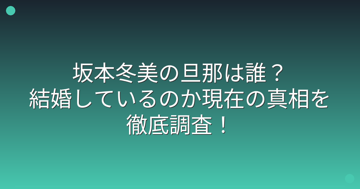 演歌歌手として長年活躍されている坂本冬美さんですが、結婚や旦那について気になる方も多いのではないでしょうか。