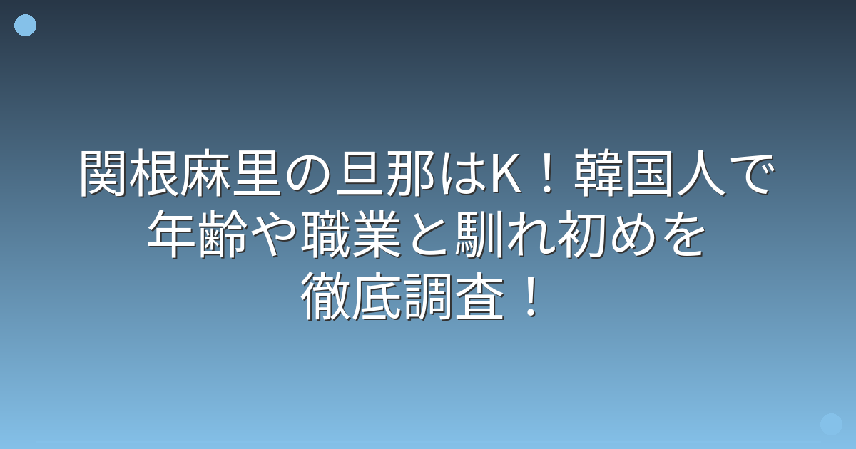 旦那様のKさんは関根麻里さんより3歳年上ということで、現在42歳前後と考えられます。