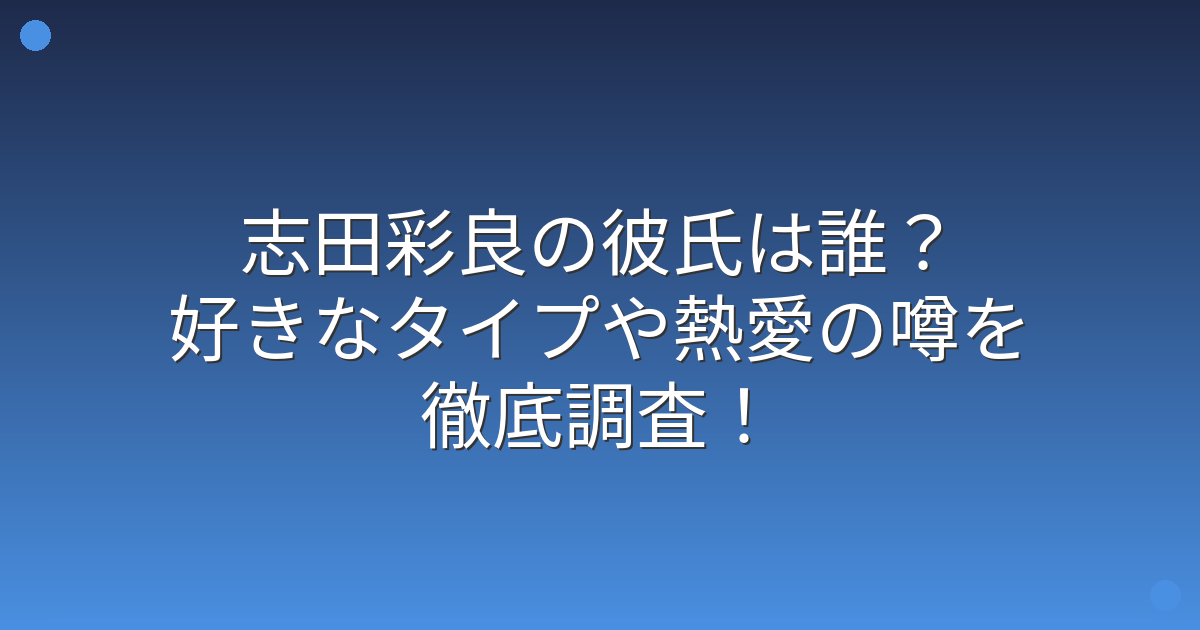 複数の報道を調べた結果、志田彩良さんに現在彼氏がいるという情報は確認できませんでした。