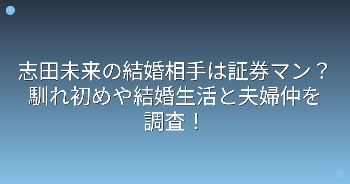 証券マンという職業柄、安定した収入があることも予想され、志田さんの芸能活動を支える良きパートナーとして、しっかりと家庭を支えていらっしゃるようです。