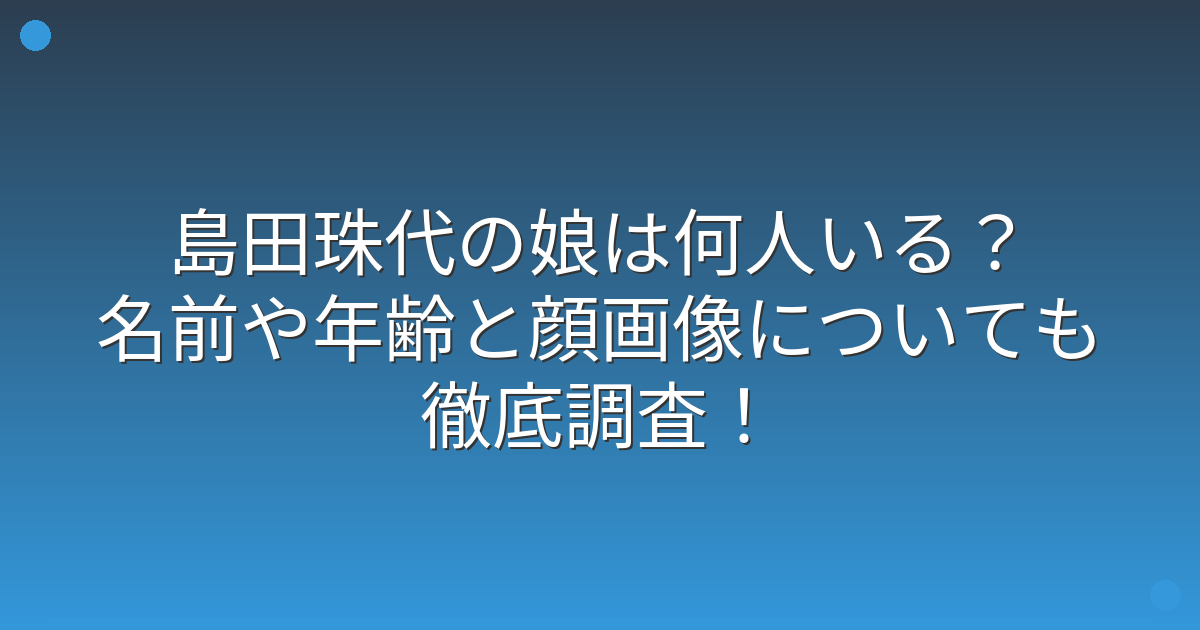 島田珠代さんには娘さんが1人いらっしゃいますが、名前や顔画像などの詳細な情報は公開されていません。