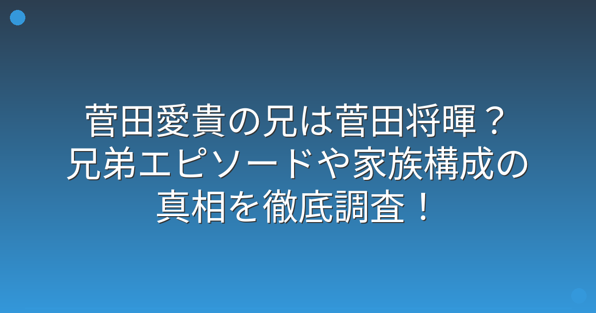 菅田愛貴さんの兄が誰なのか、そして兄弟関係や家族構成について気になっている方も多いのではないでしょうか。