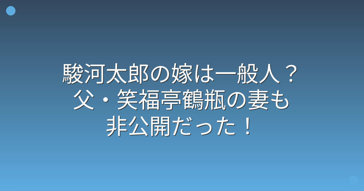 駿河太郎さんの嫁(妻)に関する情報は、現時点で公式に発表されていません。