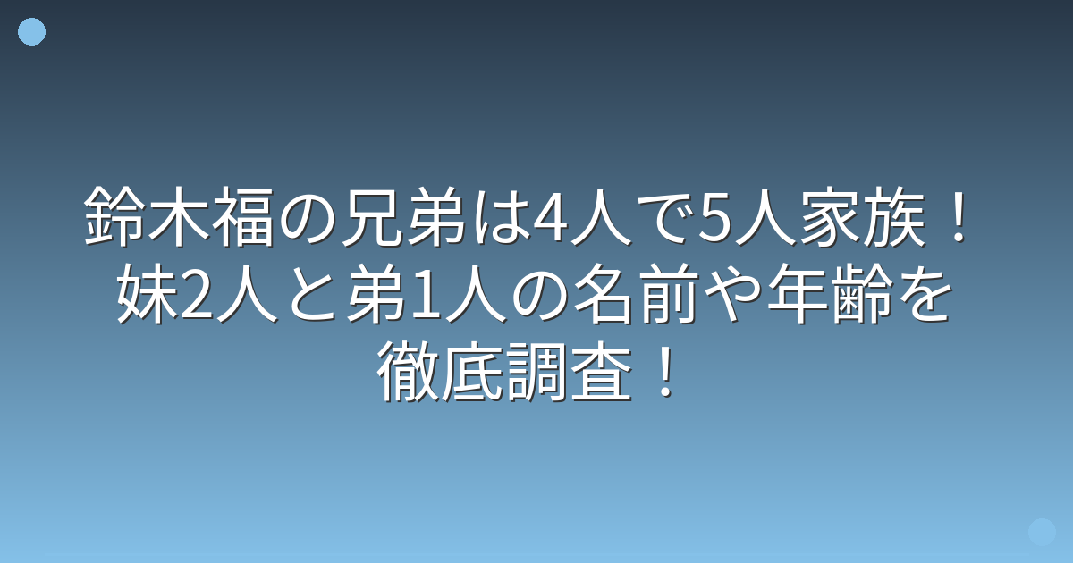 鈴木福さんの兄弟について、それぞれの名前や年齢が気になるところです。