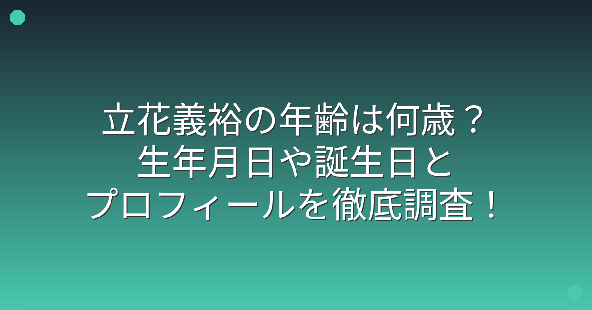 最近、注目を集めている立花義裕さんですが、具体的な年齢や生年月日について気になっている方も多いのではないでしょうか。