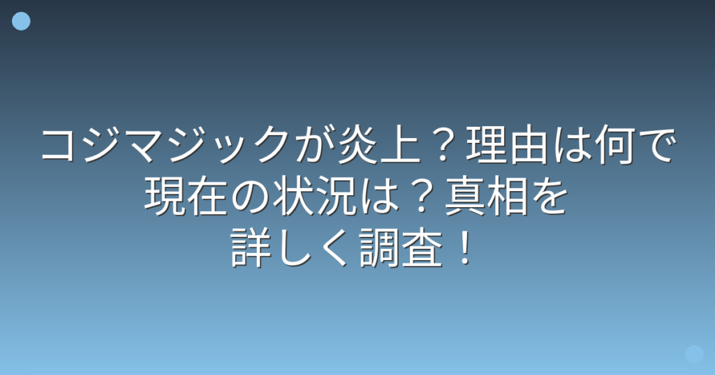 コジマジックが炎上?理由は何で現在の状況は?真相を詳しく調査!